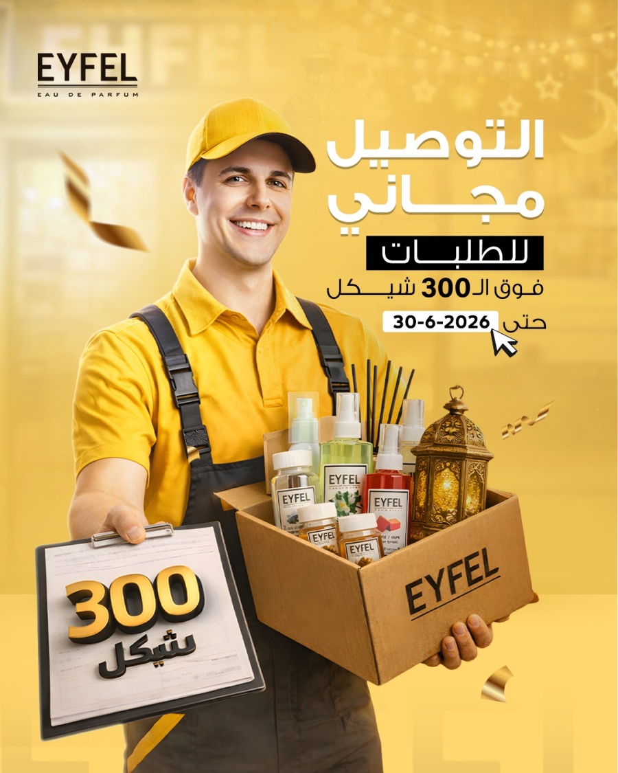 التوصيل مجاني لاي طلب اكثر من 300 شيكل حتى تاريخ 30-6-2026